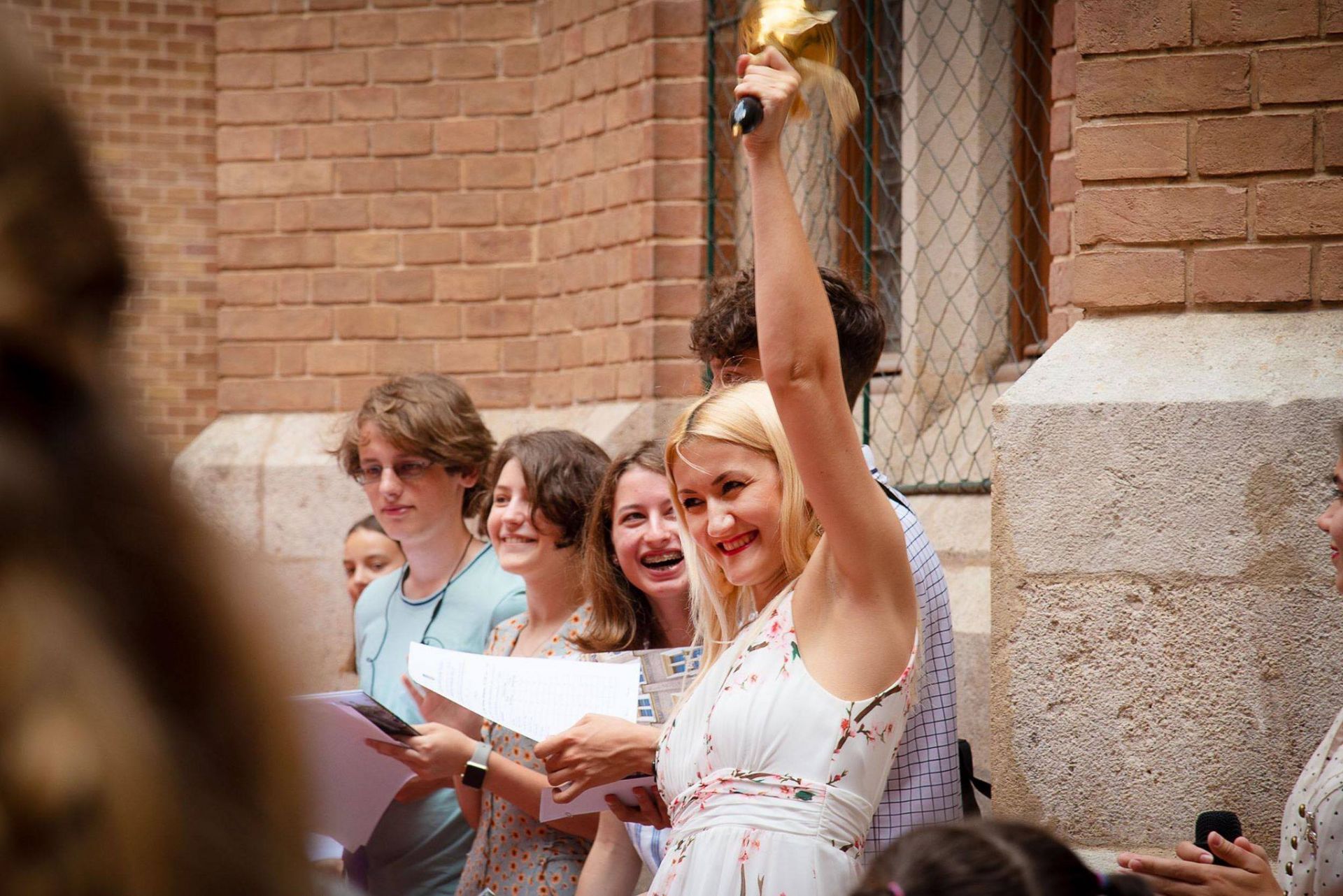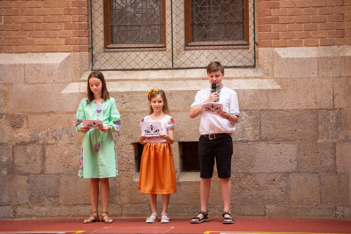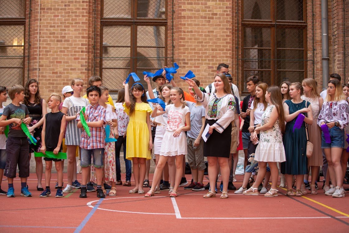 З самого ранку на українському факультеті Гоґвортсу панувала святкова атмосфера. Маленькі чарівники, разом з батьками, приїжджали до замку з різних куточків Відня, Австрії та близьких країн, аби відсвяткувати разом із вчителями закінчення незабутнього навчального року. Позаду лишились місяці кропіткого навчання, веселі суботи у найкрасивішій школі, щотижневі пригоди і неймовірні заходи. І поки вчителі і учні згадували неймовірні суботи у школі, ведучі свята запросили гостей у двір школи і свято почалось. Учні, з різнокольоровими стрічками в руках, утворили яскраву шкільну веселку - кожен клас мав свій колір, що символізував цікавинки зі шкільного життя. Ведучі відкрили свято гімном України і, разом з директором школи, розпочали нагородження учнів кожного класу дипломами успішності, табелями і свідоцтвами досягнень. Кожен учень отримав підтвердження своєї кропіткої роботи протягом цього року і солодкий подарунок. Звісно, це був не просто подарунок, а чудо-шоколадка брендована логотипом нашої школи, яка була виготовлена спеціально для свята Останнього дзвоника. І принесли її для юних чарівників магічні сови з прекрасного міста Дніпра. Привітав учнів із закінченням навчального року повноважний Посол України в Республіці Австрія Олександр Щерба і вручив випускникам Української Суботньої Школи у Відні свідоцтва про здобуття повної загальної середньої освіти. Несподіванка чекала на батьків-меценатів Школи, які надали фінансову підтримку в минулому навчальному році: Їх поіменно викликали на імпровізовану «сцену», щоб під аплодисменти присутніх вручити вдячні грамоти від організаторів Школи. Почесні Подяки отримали також спонсори Суботньої Школи: компанія First-DDSG Logistics Holding GmbH, Посольство України в Австрії, а також Церква Св. Вмч. Варвари - за потужну спонсорську допомогу Школі. Під овації і оплески, для випускників і усіх учнів школи пролунав останній дзвоник - що сповістив про початок нового етапу життя - після якого всі наші учні стануть на рік дорослішими!