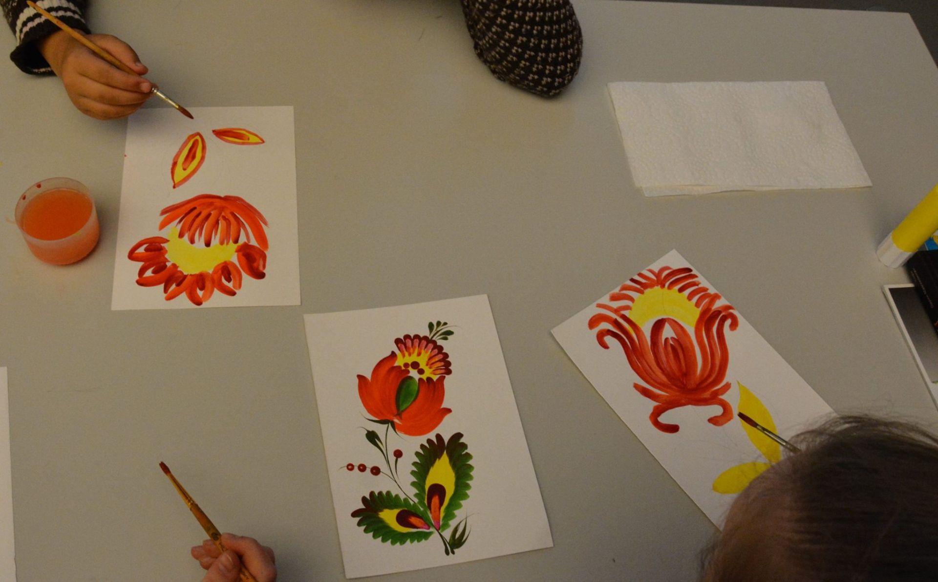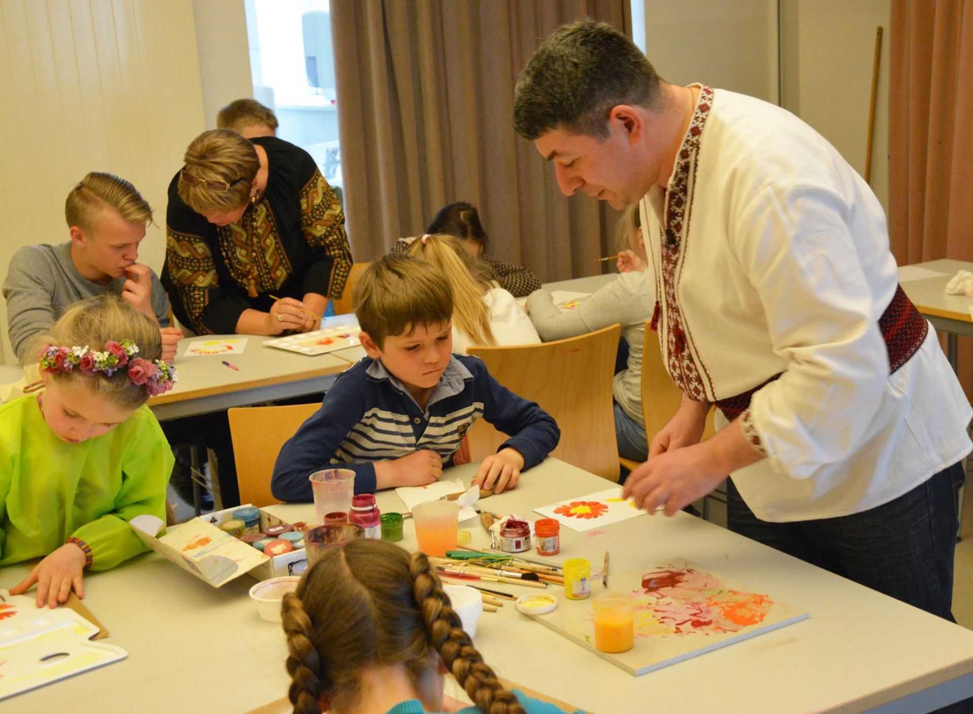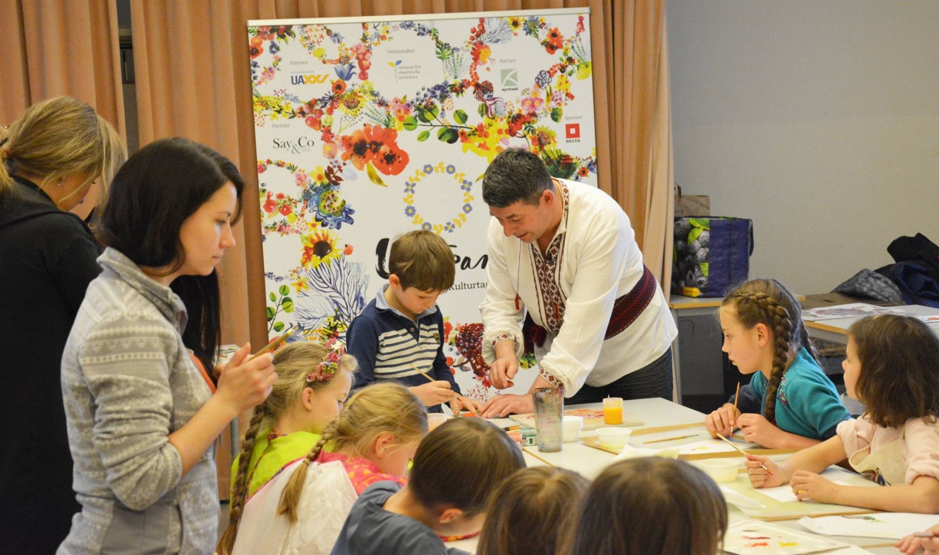 В рамках українського фестивалю Ukrainische Kulturtage I U stream Fest, який цими днями проходить у Відні, до Українська суботня школа у Відні завітав художник Олександр Опарій, який розкрив дітям деякі таємниці мистецтва Петріківського розпису. В усіх - маленьких і великих - вийшло надзвичайно гарно. На захоплений вигук однієї мами: "Боже які молодці. Так гарно намалювали з першого разу." Якийсь тато відповів: "Звичайно. Це ж українські гени".