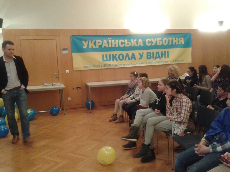 6 лютого 2016 року Українську Суботню Школу у Відні відвідали дітки з України, які подорожують з країни в країну з чудовою акцією "Діти за мир у всьому світі". Дякуємо Фонд Відродження Прикарпаття за чудову ініціативу, радіємо новим гарним знайомствам, приємно було бачити в Суботній Школі посла Олександра Щербу, пана Василя Вишиванюка, Ганну Крисюк. Дуже дякуємо Віктору Бабущаку, Катерині Копил та Денису Моторному, які за короткий час зуміли організувати цей візит, а також всім, хто долучився.