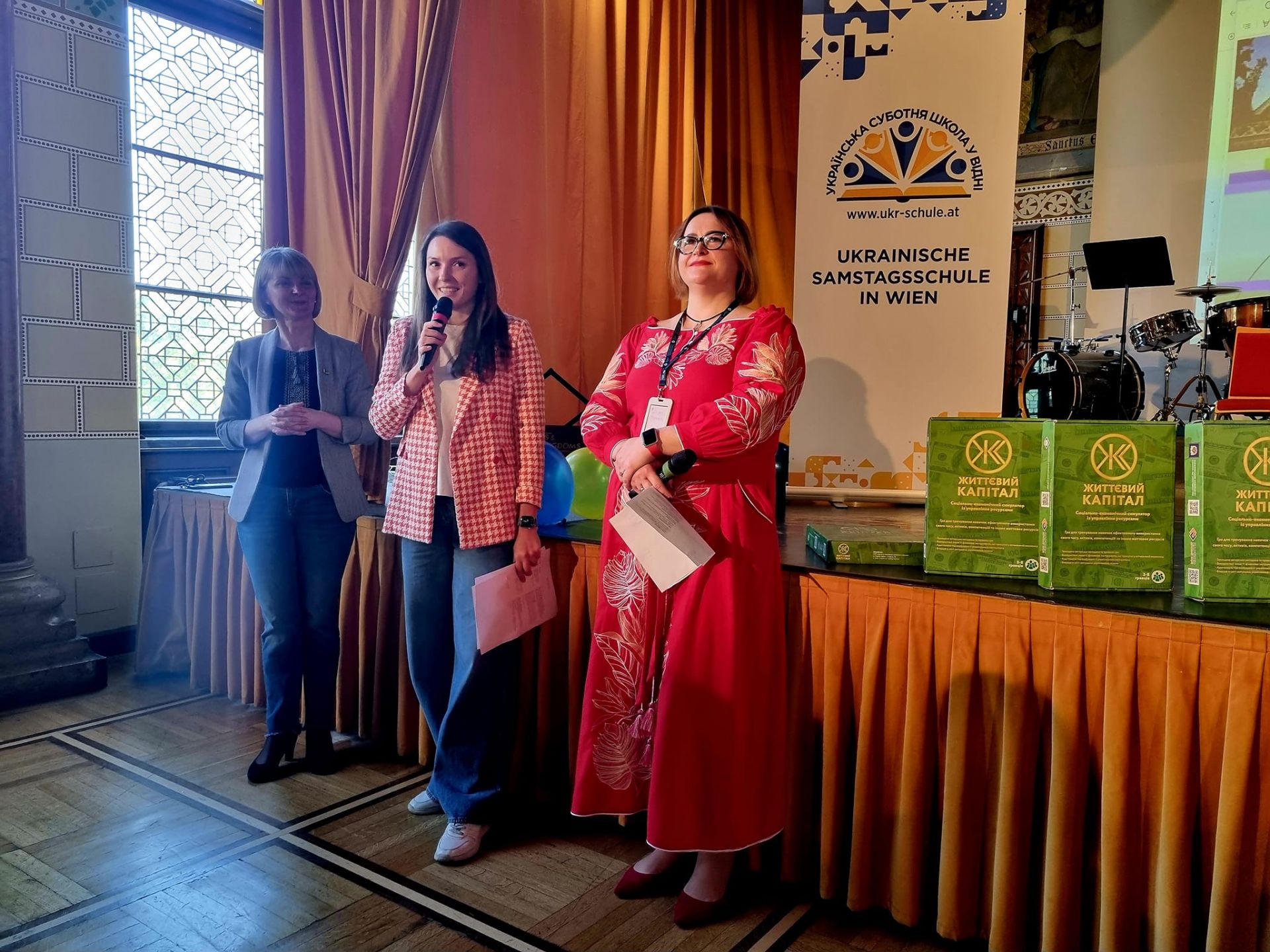 Різноманітні заходи Української суботньої школи вже важко уявити без чарівного співу Оксани Допілко й геніальних композицій у виконанні нашої неймовірно обдарованої вчительки-скрипальки Евеліни Подолянчук .