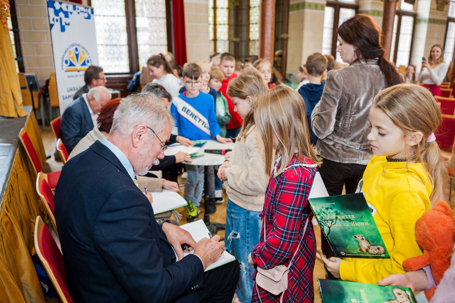 Завдяки нашим приятелям з клубу «LIONS» та нашій викладачці Наталії Барабаш, учні Української суботньої школи отримали чудову нагоду зануритися в пригодницький світ веселих левенят. Це цікаві історії про дружбу, сміливість, відданість та взаємодопомогу, які були видані українською та німецькою мовами. Після інтерактивної презентації книжки наші гості з задоволенням поспілкувалися з школярами та підписали подаровані примірники.